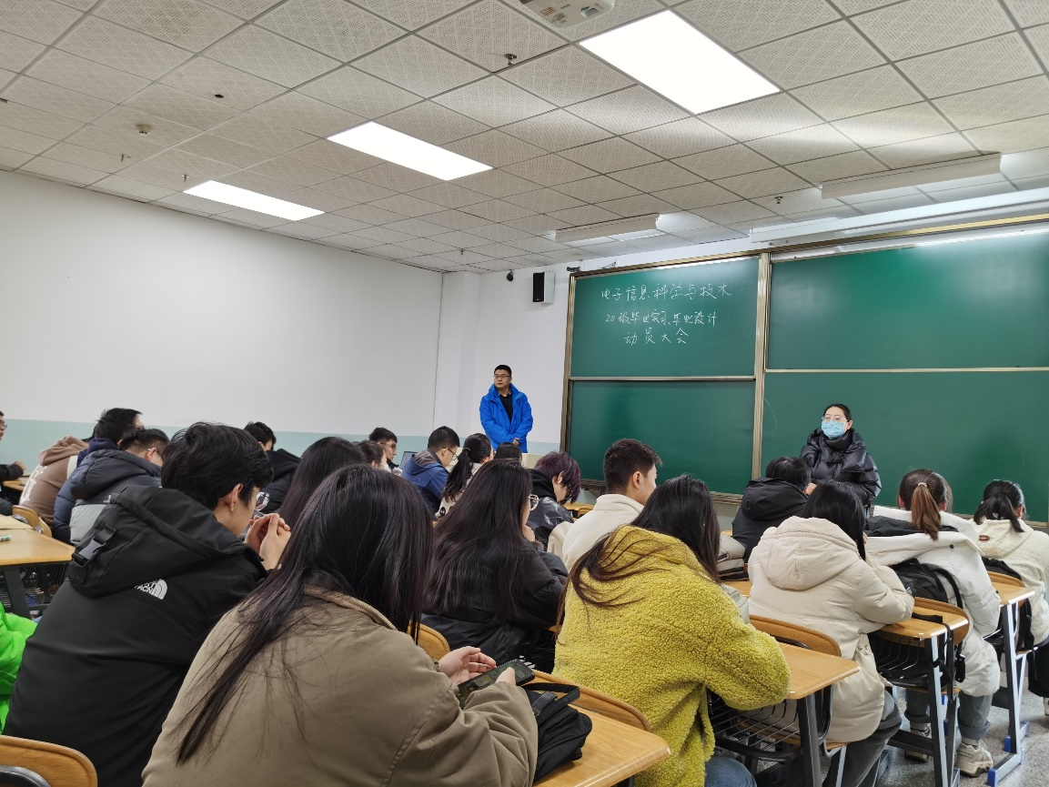 在动员会上,黄玲老师就当前的就业形势进行了分析,并结合优秀校友的案例,向学生们阐述了毕业实习、毕业设计在学生学习和知识习得方面的重要性。指出毕业实习、毕业设计是学生们将所学知识应用于实践的重要机会,能够帮助学生深入了解行业需求和实际工作环境。黄老师鼓励学生们积极投入到毕业实习和毕业设计中,不仅要完成任务,更要通过实践提升自己的专业能力和解决问题的能力,为未来的就业做好充分准备。