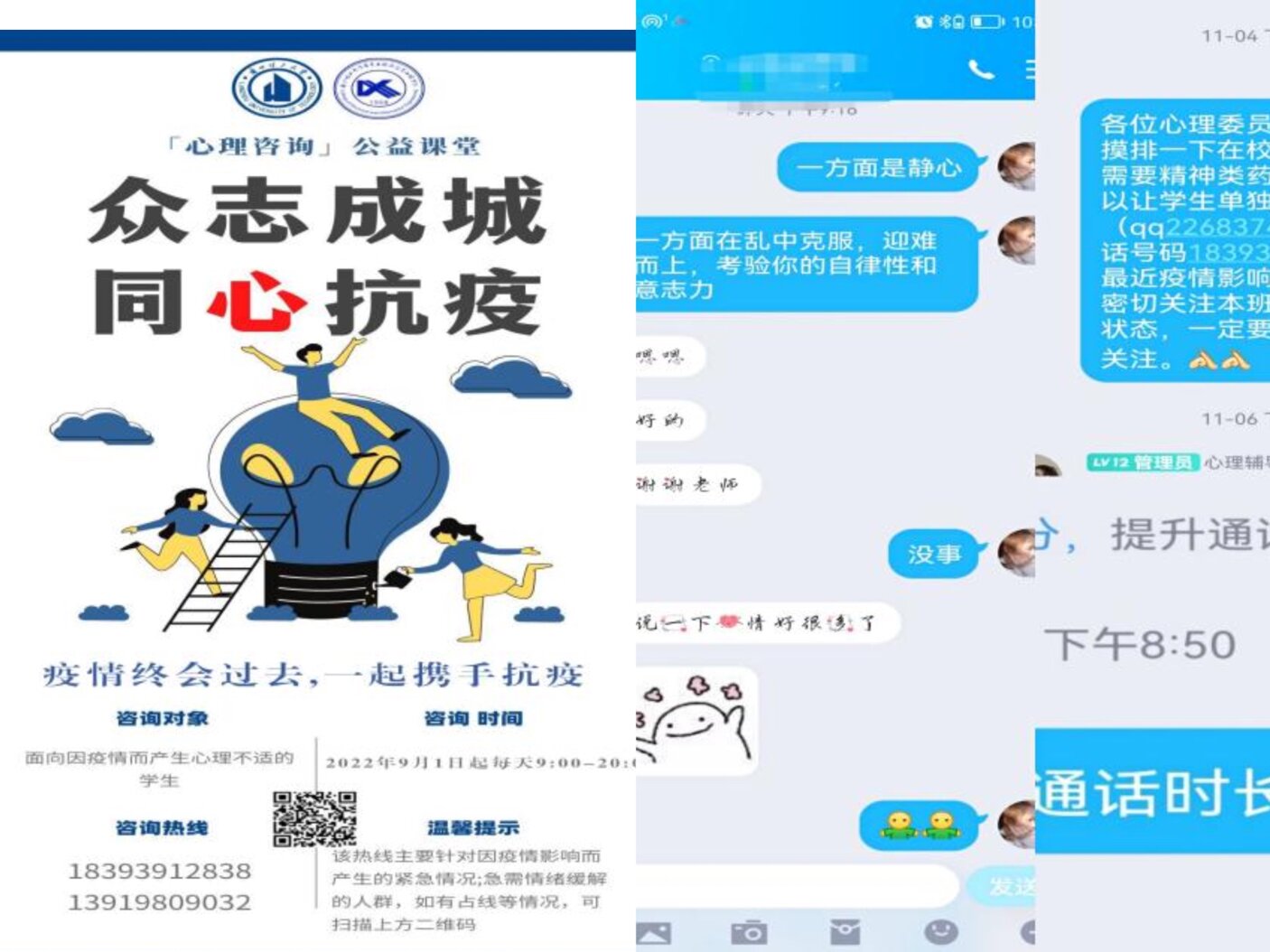 心理辅导站老师在疫情初始就开通线上心理咨询热线服务,以电话、qq等形式为有需要的学生提供帮助。
