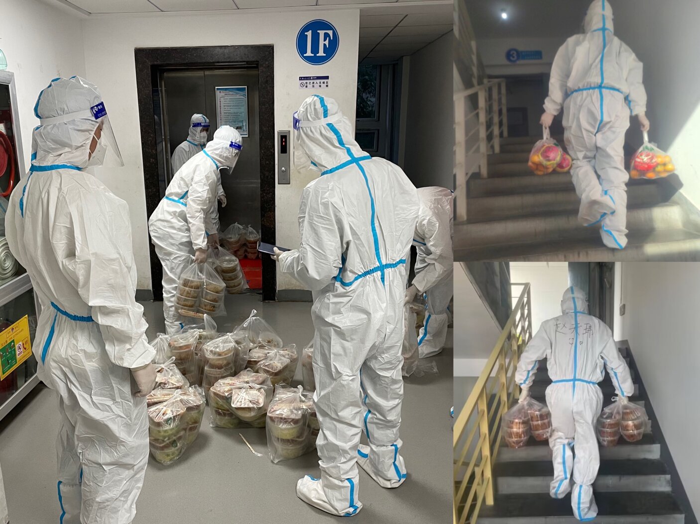 “兵马未动,粮草先行”。作为校园抗疫团队中最青春的力量,用坚守与奉献筑牢校园战疫钢铁长城。在防疫物资配送中满负荷运转,严格落实人、物、环境同防要求,凌晨将一箱箱防疫物资、口罩搬运到学生公寓;每天7点开始做好一日三餐的送餐准备,有序接驳、分层转运,确保第一时间将热饭送到学生手中;毅然承担起坚守楼层的重任,直面风险,化身可爱的“大白”和校园“摆渡人”,做好学生公寓楼垃圾清理、环境消杀和生活必需品发放、提供热水、设备检查维修等等后勤服务,确保学生生活有保障,公寓环境安全稳定;于细微处显担当,落实落细网格化管理机制,通过印制“核酸检测序号”,核酸检测“分楼层分宿舍”有序进行,确保不漏一人;一间一间宿舍核查,绘制学生分布平面图;手拿肩扛,将一袋袋餐盒、水果送达学生;建立《巨乳做爱