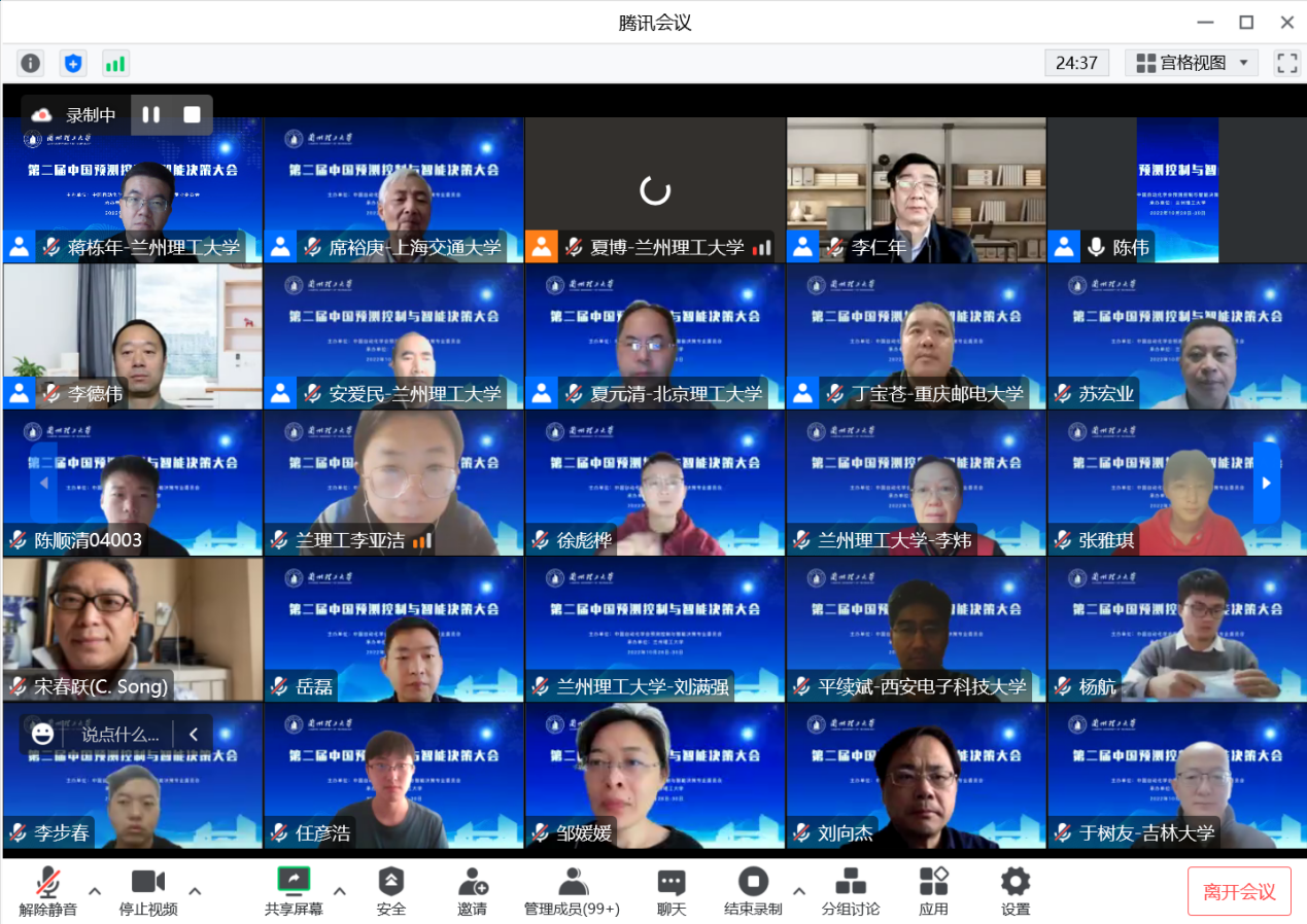 承办的“第二届中国预测控制与智能决策大会” 通过腾讯会议的形式在线召开。中国自动化学会第七、第八、第九届理事会副理事长席裕庚教授、中国自动化学会预测控制与智能决策专业委员会主任委员李德伟教授、巨乳做爱