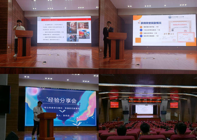 会上,毕业生们结合自己的奋斗历程和成长成才经历,分别从学习、生活、工作实践和考研经历等方面分享。2018级王沚洋同学分享了自己的学习经验,提出了要“不懂就问,勤学苦思”的学习方法,同时针对未来学习的方向和目标做出了正确的指引。2018级优秀毕业生张向远向大家建议到“别让自己闲下来,要把四年的学习比作长途跋涉,在四年里积攒动力,让“跳板”更弯,未来跳的更远”。刘效旺同学向大家分享了以“弘扬红柳精神,展示精彩校园生活”为主题的报告,他对学弟学妹们嘱咐到:“学习生活一定要保持坚持的品质,鼓励大家敢于做梦、勇于追梦、努力圆梦”。2018级自动化卓越班优秀集体代表王毅从班级制度建设、班级活动、团支部建设、学习成绩、学风建设、文体活动等方面依次进行详细的展示,同时就如何更好地组织动员同学们进行了经验分享,让同学们对优秀班集体建设有了更进一步的了解。在观众提问环节,同学们踊跃举手发言,分享同学认真回答问题,积极为同学们解答在成绩、科创等方面的疑惑。