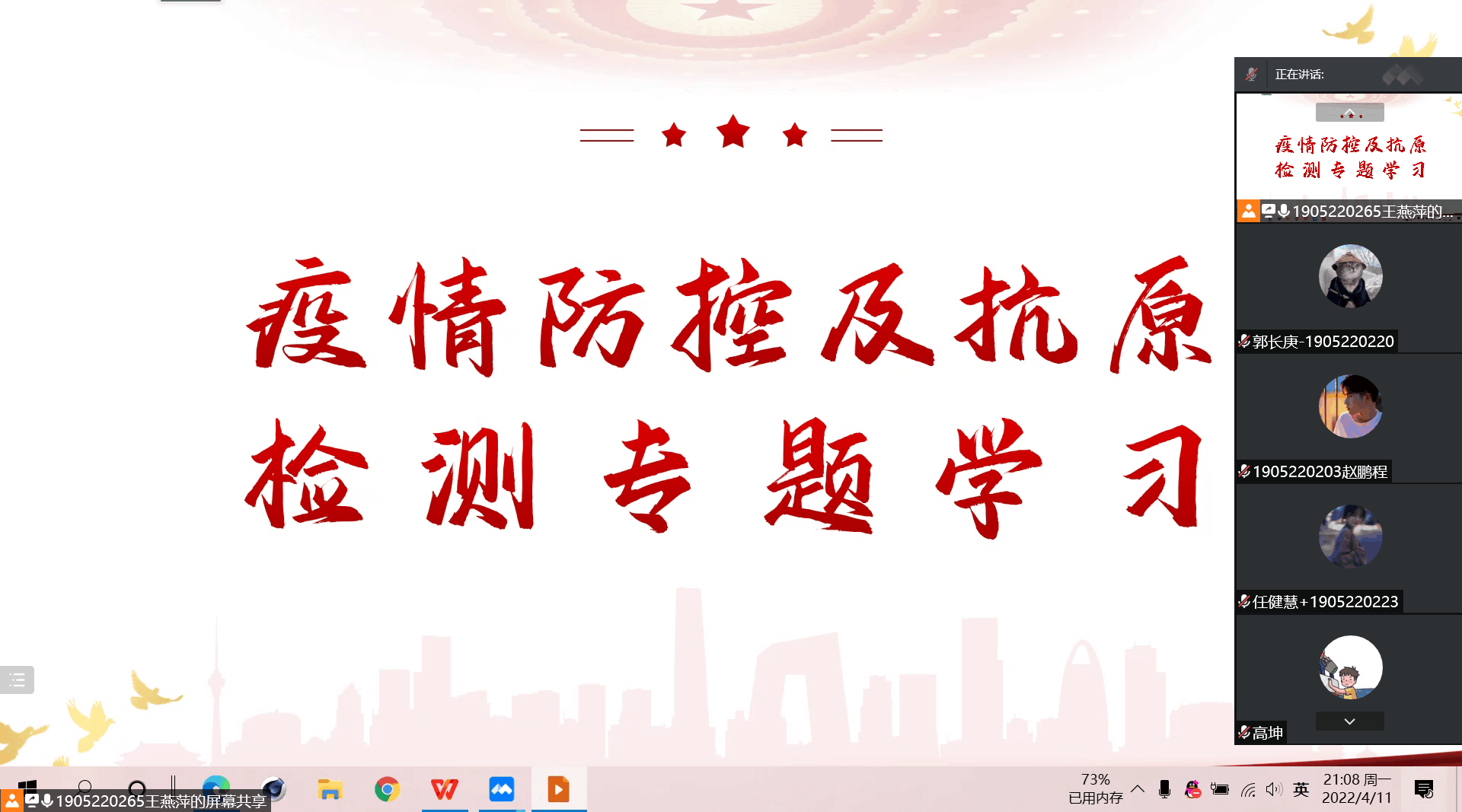 组织召开疫情防控及抗原检测专题学习线上班会和团日活动,进一步增强学生疫情防控能力,提高疫情防控意识,确保全体学生的身心健康。