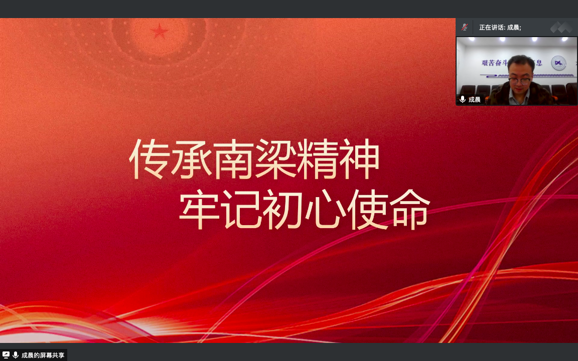 的首任校长,他“少小励志,勤奋好学;实业救国,多方奔走;教育救国,初心不改”的精神,也正是“红柳”精神的彰显。第二阶段成老师以“传承南梁精神·牢记初心使命”为主题,介绍“面向群众、坚守信念、立党为公、求实开拓”的南梁精神。最后,成老师对在场的每一位青年学生提出“脚踏实地、仰望星空”的期望。