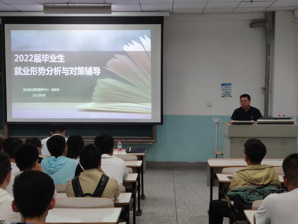 邀请学校学生就业指导服务中心主任杨金明开展“认清形势,抢抓机遇,积极就业”为主题的毕业生关键阶段就业形势分析与对策专题动员会,巨乳做爱