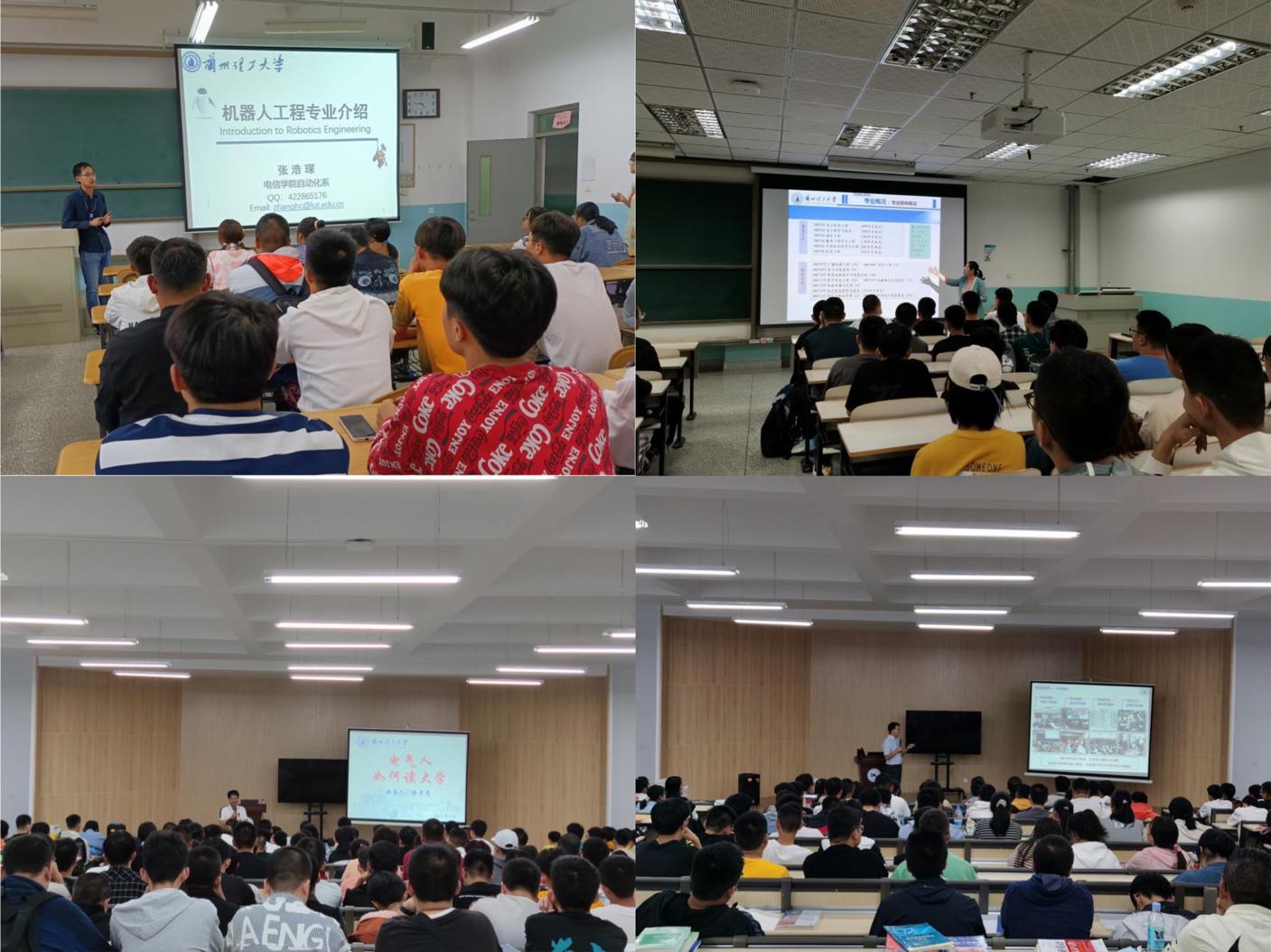 电气工程及其自动化、自动化、电子信息科学与技术、机器人工程2021年度专业入学教育在彭家坪校区励志楼及求是楼教室举行。本次新生专业认知教育由电气系主任张宏亮副教授、自动化系主任蒋栋年副教授、电子信息系主任黄玲副教授、机器人专业张浩琛老师主讲。