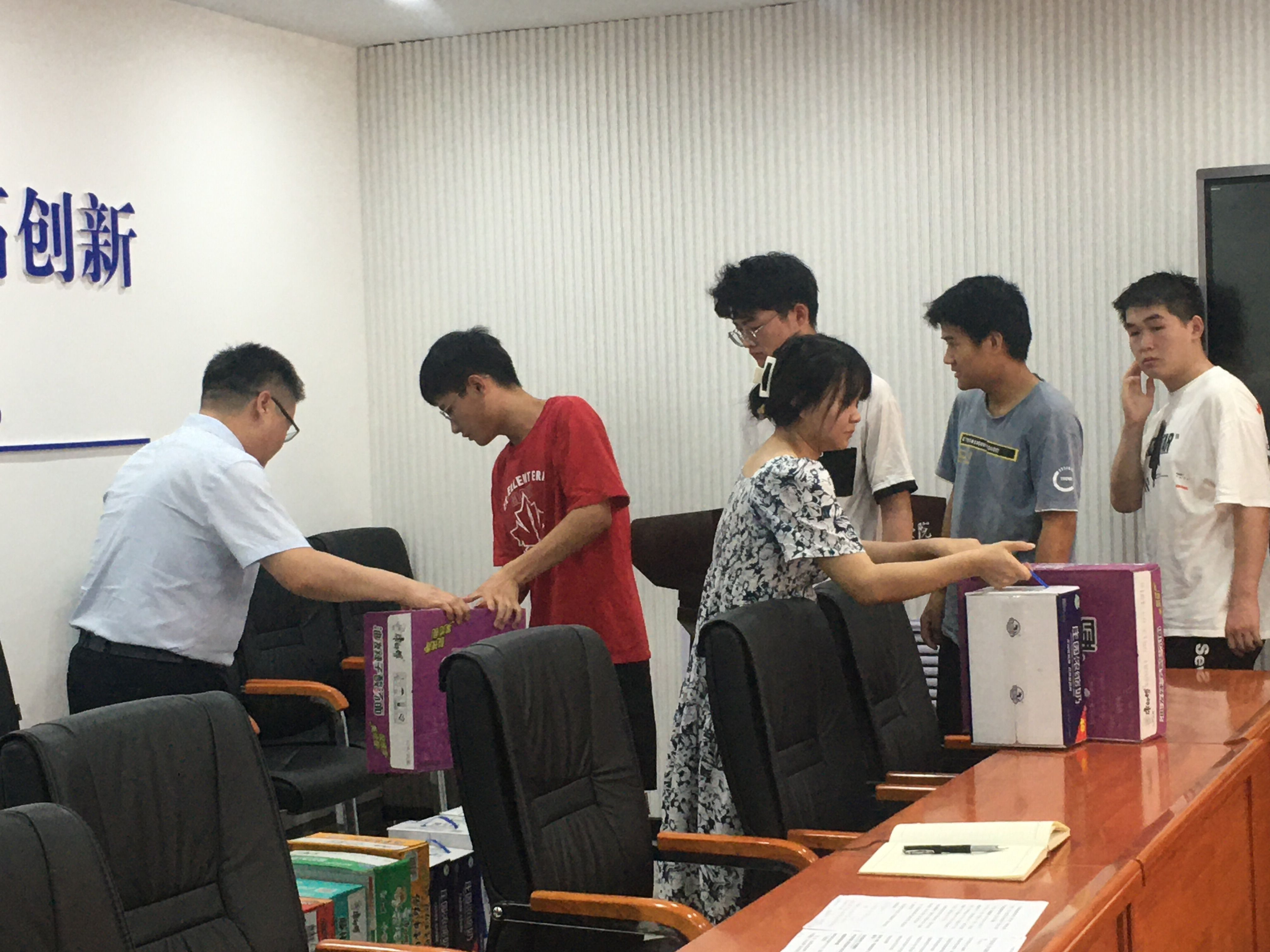 座谈会结束后,刘洪国副书记为同学们赠送了牛奶、方便面等生活用品。