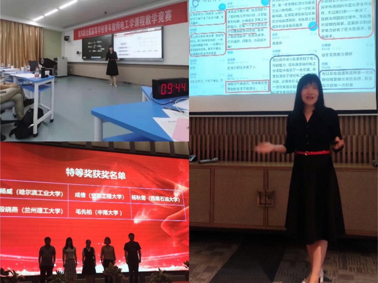大赛结束后,段晓燕老师作为特等奖获奖教师代表,做了课程展示和会后分享,她以“感怀党恩、历史传承、课程思考、教书育人”为主题,阐释了兰理人“西迁精神拓土,红柳精神守疆”的坚守和信仰。中国高等学校电工学研究会副理事长、西安交通大学教授刘晔老师评价到“听了段老师的分享,我很感动!”。