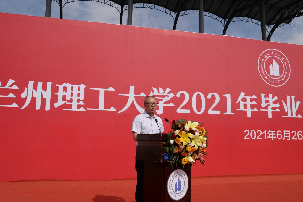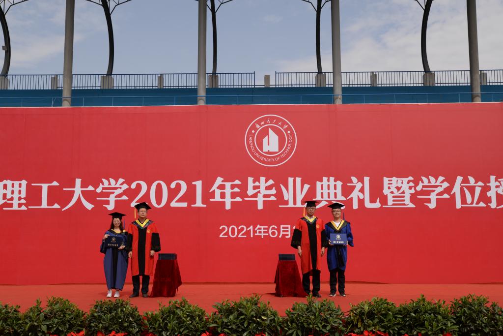 典礼上,2021届硕士毕业生代表牟淼、2021届本科毕业生代表赵石磊同学代表全体毕业生做了发言,表达了对全体毕业生在困惑时点亮指明灯,失败时给予勇气的老师、父母、朋友的由衷感谢和离别之情。号召全体毕业生绝不辜负母校和老师的辛勤培育,在“天高任鸟飞,海阔凭鱼跃”的时代大潮中,走好新长征路,书写属于2021届毕业生的锦绣华章。2018级高语阳同学代表全体在校学生对2021届毕业生表达了感谢并送上了毕业祝福,祝愿所有2021届毕业生用激情唱响青春的动人乐章,用才华绽放出人生的绚烂花朵,前程似锦,归来仍是少年。