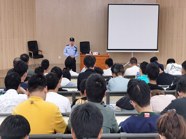 会议伊始,参会同学领取了《警方提醒:电信网络诈骗花样多》宣传彩页,倪鹏警长在主题教育中,向学生讲解了各类网络诈骗的类型、电信网络诈骗流程、电信网络诈骗的危害、电信网络诈骗的甄别与处理应对等诸多方面的内容。同时,组织全体学生讨论发生在身边的电信网络诈骗真实案例,并进一步结合典型案例,分析近期针对高校学生出现新型、迷惑性更强的电信诈骗手段。