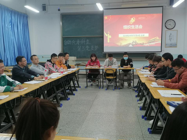 自动化本科生第3党支部于2021年3月18日晚在彭家坪校区励志楼B103召开2020年度组织生活会和民主评议党员大会,全体党员参加会议,邀请党外群众代表列席会议。后勤管理处处长曹戈同志参加会议,支部书记成晨同志主持会议。