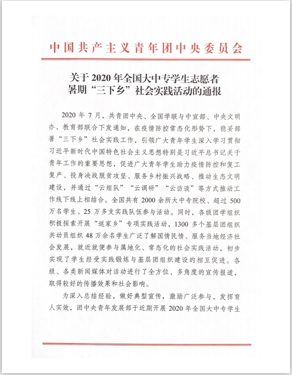 近日,团中央青年发展部公布了2020年全国大中专学生志愿者暑期“三下乡”社会实践活动总结通报,电信巨乳做爱