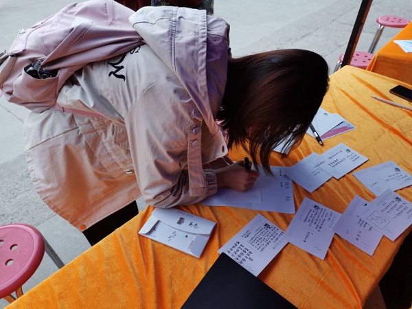 的学生纷纷献出爱心,捐出自己的课外读物并在明信片上留下了自己对小朋友们的关心和祝福。