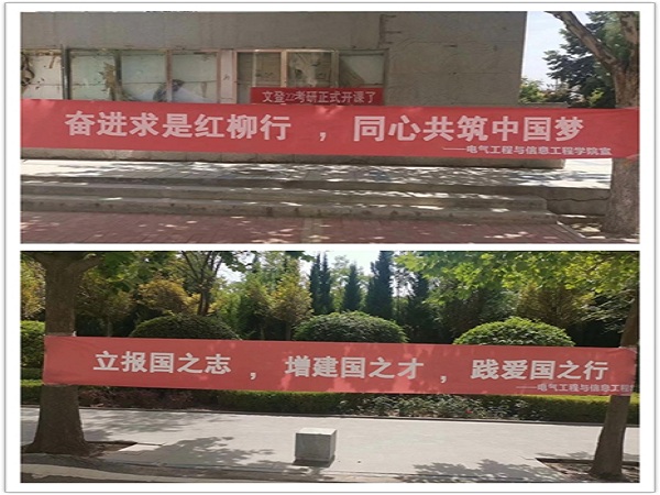 通过悬挂“奋进求是红柳行,同心共筑中国梦”,“立报国之志,增建国之才,践爱国之行”等爱国宣传标语,号召全校师生发扬爱国主义精神。通过此次活动,同学们纷纷表示,要牢记祖国历史,增强爱国情感,认清新时代青年的历史使命,勇担民族复兴重任!