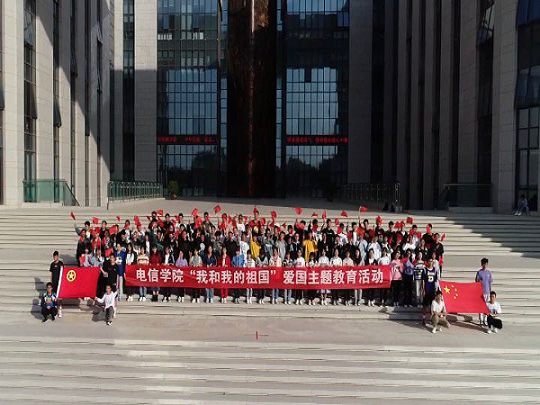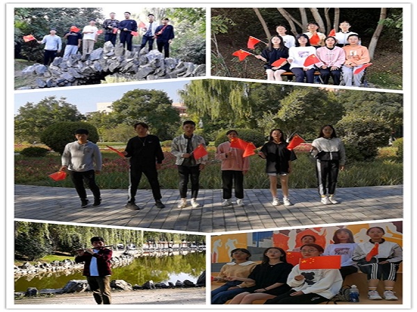 组织开展了“我与国旗有个合影”活动,同学们在问鼎堂门前与国旗、团旗进行合影。