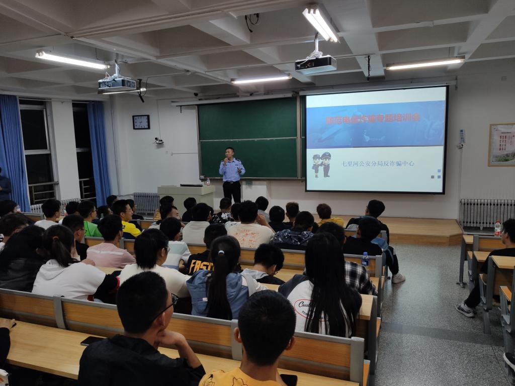 2020级的新生们说明了电信诈骗的总体形势:近期电信诈骗案件频发,陆续出现了针对学生的新型的、迷惑性更强的电信诈骗手段,给同学们切身利益造成了严重威胁。之后,朱警官结合多个生动的典型案例,帮助学生认清了电信诈骗犯罪的严重性和危害性,有效提高了学生对电信诈骗犯罪的识别和应对能力,增强了学生的警惕性和防范意识。