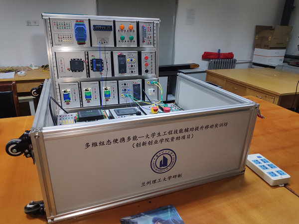 资助,比赛指导老师积极探索而独立开发的第一批“多位组态便携多能---大学生工程技能辅助提示移动实训坊”自制设备已经开发完成。实训坊自制设备硬件设计通过科学封装自动化典型基本模块,采用便携多能的形式突破空间限制;在软件层面将采用加强慕课和线上资源社区建设模式。这样在立足根本、服务基础、持之以恒、滚动迭代的教研过程后,实训坊解决方案在软硬件建设过程中最终会营造和呈现出相互辅助、协同发展的格局与态势,持续为同学们服务。