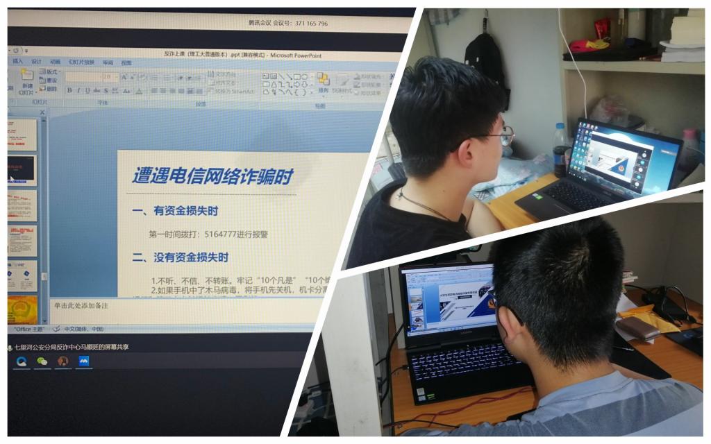 邀请七里河公安分局反电信网络诈骗中心相关工作人员通过腾讯会议线上平台开展防范诈骗、抵制不良渠道贷款主题线上宣讲。通过宣讲提高同学们对网上兼职、网络刷单、网购退款、入学招生、助学贷款等诈骗手段的警惕心,加强学生群体个人信息安全教育和防骗宣传。