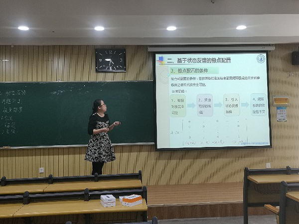 5月29日下午,自动化系开展了“李炜教授名师工作室”和“控制理论与工程实践”红柳一流课程群专题教学研讨活动。本次活动针对学校即将举办的第五届青年教师教学基本功竞赛,为青年教师李亚洁和惠永永进行集体听课指导,做好赛前准备工作,甘肃省教学名师李炜教授、“控制理论与工程实践”红柳一流课程群负责人刘微容教授、自动化系主任王志文教授、副主任蒋栋年副教授以及课程群相关教师参加了此次活动。