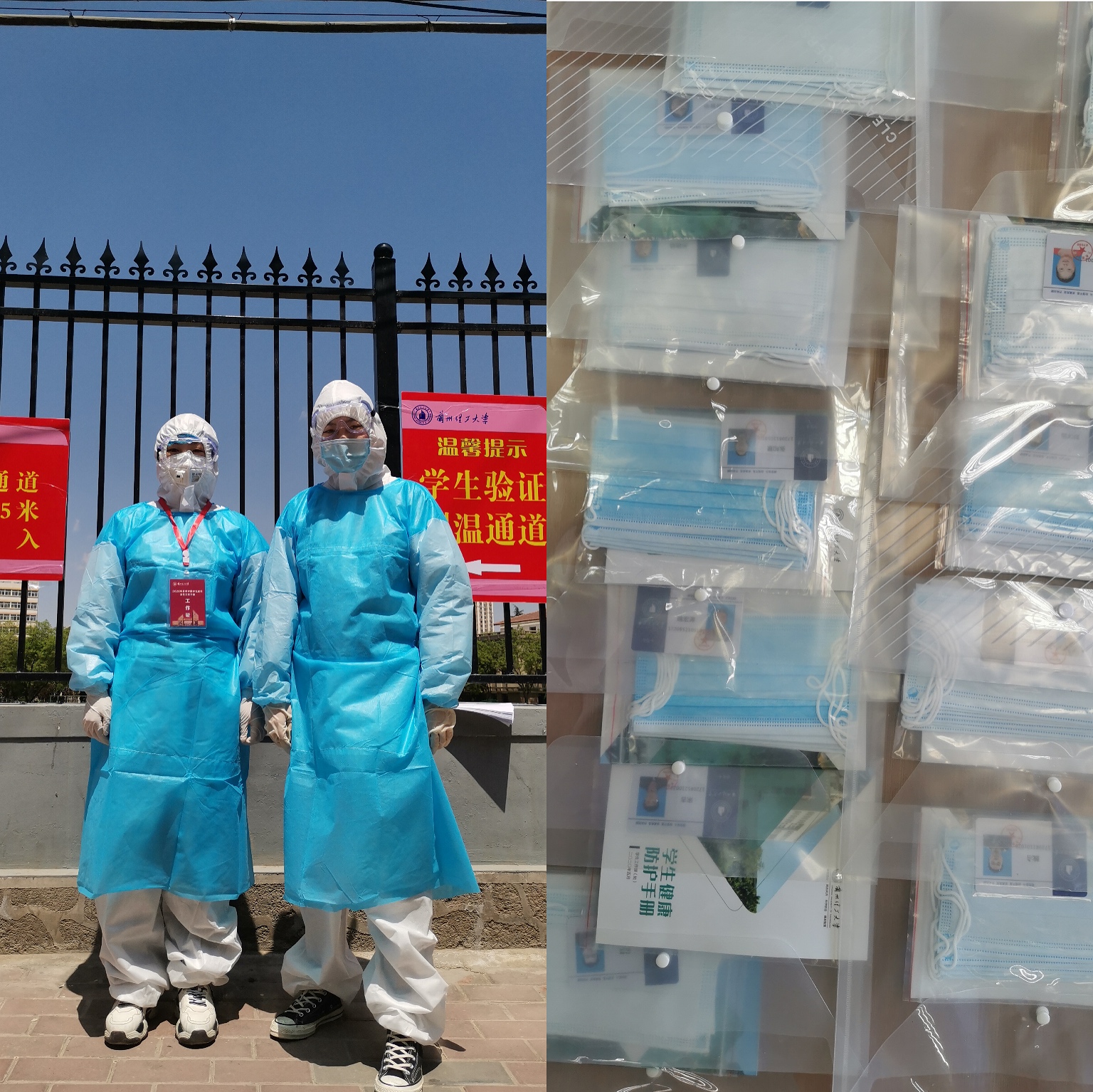 爱心防疫礼包,内装有防护口罩、《学生健康防护手册》、《校园一卡通手册》、免洗手消毒凝胶、洗洁精、一次性垃圾袋等。巨乳做爱