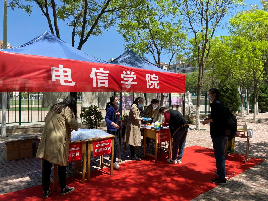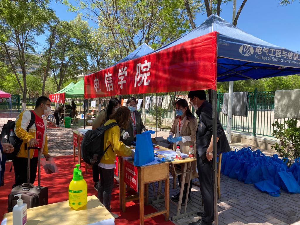 领导当天指导学生返校报到工作,询问路上辛苦不辛苦并叮嘱学生安心学习、安心生活,确保身心健康。2017级电气工程硕士毕业生李琳同学顺利返校后有些兴奋地说道:“终于回来了!”2017级控制工程硕士毕业生赵雨萌见到辅导员老师后激动的说“真想你啊”。