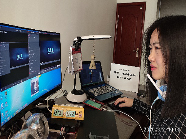 教学办及各基层单位积极配合,集思广益,力争能够以最好的精神状态和最好的教学效果展现给居家学习的莘莘学子们。而就在开学的第一天,我院教师段晓燕经过前期的精心准备,以图片、视频、QQ群讨论等多样化的形式,为学生在QQ群课堂开展了一堂别开生面的《电工学基础》课程的网络教学。在课堂中,段老师调侃自己说:我不是主播哈,所以你们要求我的专业技能就好,千万不要要求我的颜值哈!引得学生一阵开怀。图为课程还未开始,已然等待在直播间的段老师。