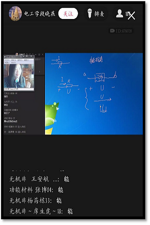 直播过程中,实时提出问题引发学生思考,充分调动了学生的学习积极性,直到下课学生都不愿意离开直播间,段老师说:我饿了,你们不离开我也不能走。而在家学习的同学们也是克服了诸多困难,出色地完成了这次听课任务,可谓电脑、手机、iPAD齐上阵。充分展示了工大学子的风貌。