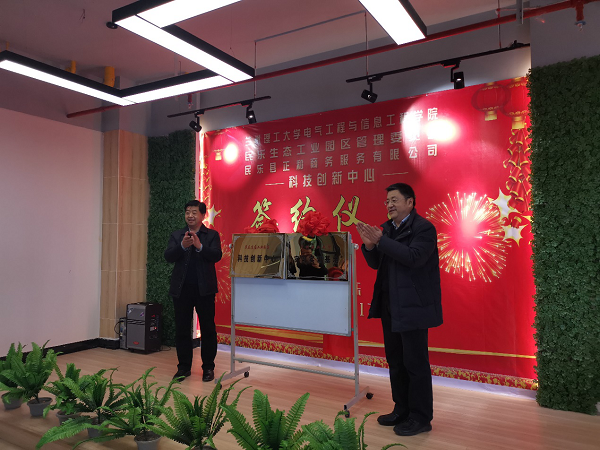 党委书记杨新华、副院长陈伟、科技处副处长张飞、自动化系主任王志文、民乐县正和中小企业服务中心全体人员参加了签约仪式。