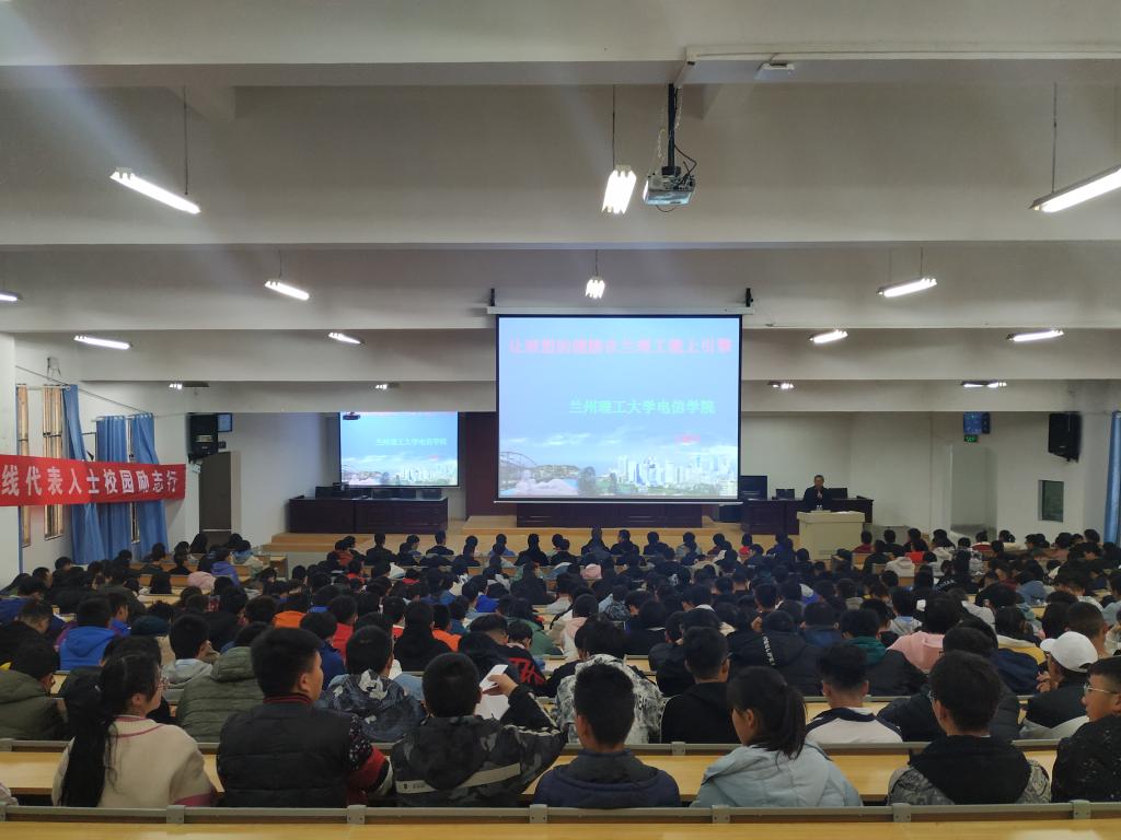2019级新生作了《让理想的翅膀在兰理工载上发动机》主题报告,报告会由2019级辅导员老师主持。