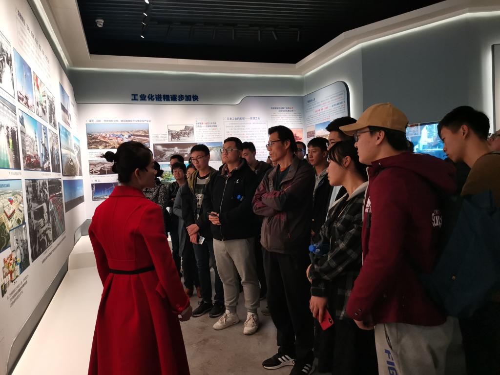 师生党员代表参观甘肃省庆祝中华人民共和国成立70周年主题览。