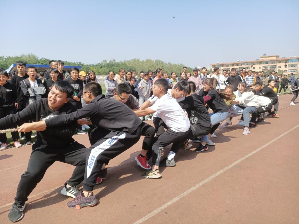 在彭家坪校区东区田径场举行“2019新生季”拔河比赛。
