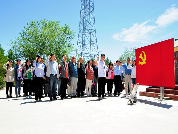 活动伊始,全体党员赴古浪县八步沙林场“六老汉”治沙纪念馆进行参观学习。“绿水青山就是金山银山”,“六老汉”三代人38年如一日,扎根荒漠,种树治沙,以愚公移山的毅力创造了荒漠变林海的人间奇迹。教工党员通过现场聆听第二代治沙人的亲身经历,参观一件件治沙实物、一幅幅生动图片,感受了精神上的震撼。活动中,在鲜红的党旗前,杨新华书记带领全体党员重温了入党誓词,号召大家积极学习“时代楷模”勇挑重任、护卫家园的担当精神,不畏艰难、实干苦干的拼搏精神,勇于探索、唯实创新的进取精神,矢志坚守、接续奋斗的愚公精神,并带领党员前往林场,实地感受三代治沙人砥砺奋进创造的绿色奇迹。