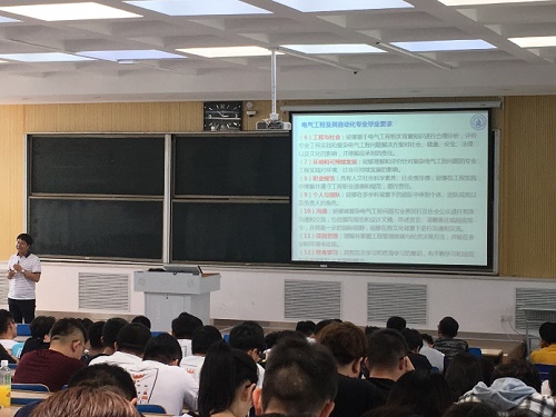 电气工程系开展了2019届电气工程及其自动化专业毕业生离校教育活动。活动中电气工程系教师张宏亮结合电气工程及其自动化专业正在开展的工程教育认证专业工作,介绍了注册工程师制度及个人为成为注册工程师应如何做好职业规划。