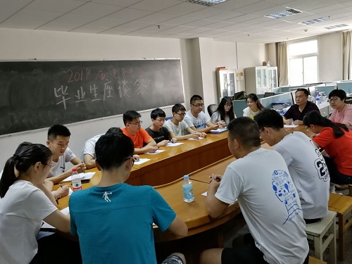 2018年6月22日上午九点,电子信息科学与技术专业在校本部综合实验楼B202室举行了2018届毕业生座谈会。电工电子教学部主任缑新科教授、电子信息系副主任黄玲副教授、杨富龙老师以及李涟凤老师出席了本次座谈会,我系2014级电子专业毕业生共24名毕业生学生代表参加了本次座谈会。