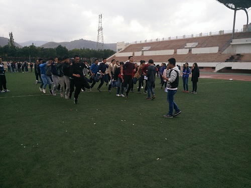 在西校区田径场举办团委、学生会学生干部素质拓展训练,参加活动的有巨乳做爱
