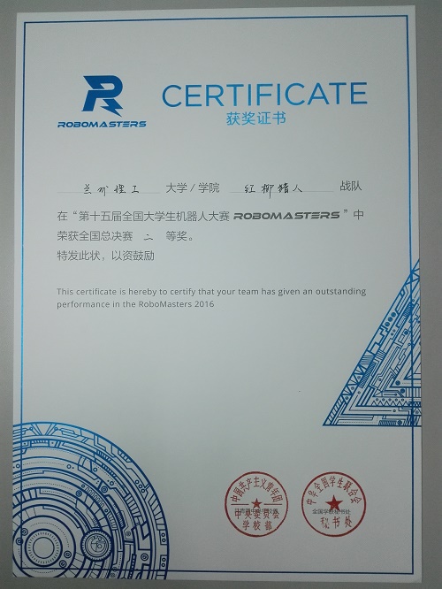 红柳猎人战队团结拼搏,最终凭借灵活的底盘移动和密切的战术配合,进入全国十六强,获国家二等奖。本次大赛还评选出十个优秀技术报告,红柳猎人战队也获此殊荣。