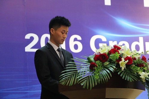 李二超院长助理宣读了《关于在毕业生中确定班级校友联络员的决定》。随后,与会领导和嘉宾向优秀毕业生代表、考研先进毕业生代表和校友联络员颁发了荣誉证书。仪式上,孙瑞奇同学代表全体毕业生做了发言,表达了他们对母校的由衷感激和不舍之情,离别之际为母校送上了最真挚的祝福;高乾恒同学代表全体在校学生对2016届毕业生表达了祝贺并送上了祝福;2016届毕业生张晨晖家长作为毕业生家长代表在会上表达了对学校四年培养的感谢,祝愿学校桃李芬芳、蒸蒸日上。