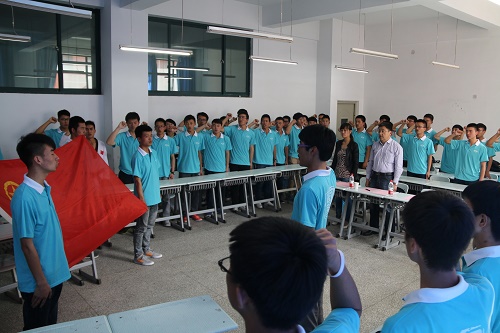 领导与团支部全体成员在团旗下,以重温入团誓词的方式纪念五四爱国运动,弘扬爱国进步民主科学的五四精神