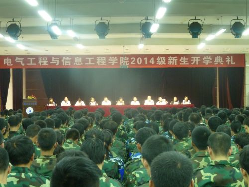 张爱华院长、杨新华书记、李策副院长,包广清教授,陈伟教授,马凤英副书记,院长助理李二超,电子系主任缑新科、自动化系主任刘微容、电气系主任张萍,全体辅导员、2014级602名新生参加了典礼。