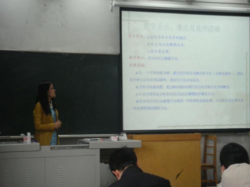 评委们通过:检查每位参赛青年教师在赛前准备好的教案;15分钟的说课环节;20分钟的课程教学演示;现场答辩等环节对教师教学基本功进行评价。比赛现场气氛紧张热烈,各位评委就每位青年教师的教案、教学展示等诸多教学环节进行点评,并给出中肯的建议。参赛的教师在比赛中受益匪浅,纷纷认为专家们的建议有助于进一步提高自己的教学水平。