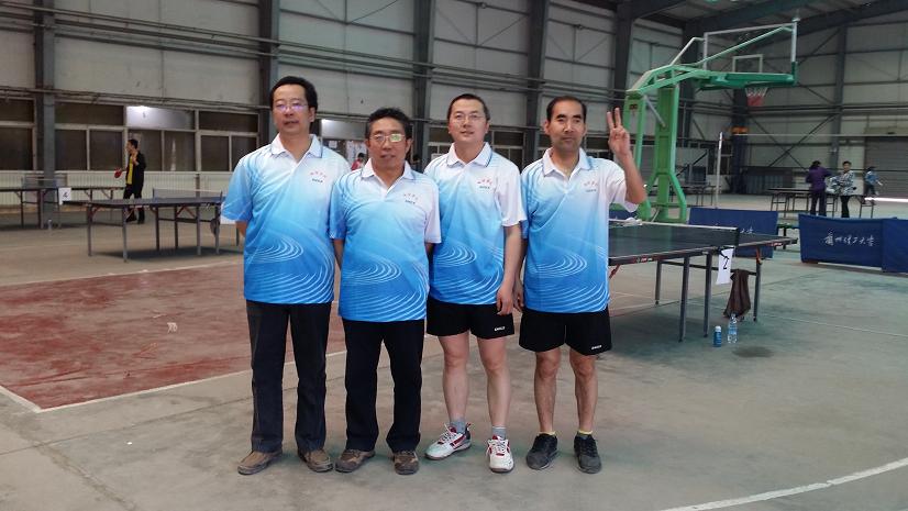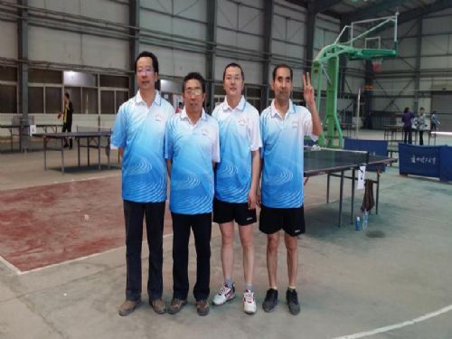 乒乓球协会的王慧中、骆冬松、安爱民和李建海四位老师参加了男子单打比赛。