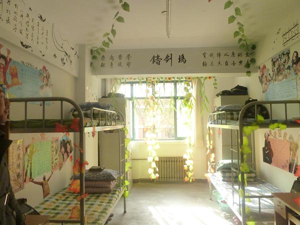2013年11月27日中午,电信院13级辅导员王安老师带领学生会评审团对进入决赛的22个宿舍进行了检查评分。此次大赛以整体美化效果和现场解说为评判标准,注重整体布局和创意亮点。参赛宿舍舍各具特色,有清新自然的“梦飞阁”,还有霸气十足的“凌霄阁”、“中南海”,更有浪浊美妙的“碎墨轩”、“忘忧轩”。一张张五彩靓丽的墙纸,一个个风趣优雅的舍名,一句句壮志凌云的舍训,都彰显着同学们别出心裁的创意。每个宿舍都弥漫着家的气息,给人以温馨舒适的感觉。