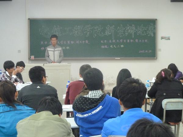 新生辩论赛在四号楼311和313教室举行。下午五点,辩论赛正式拉开帷幕。