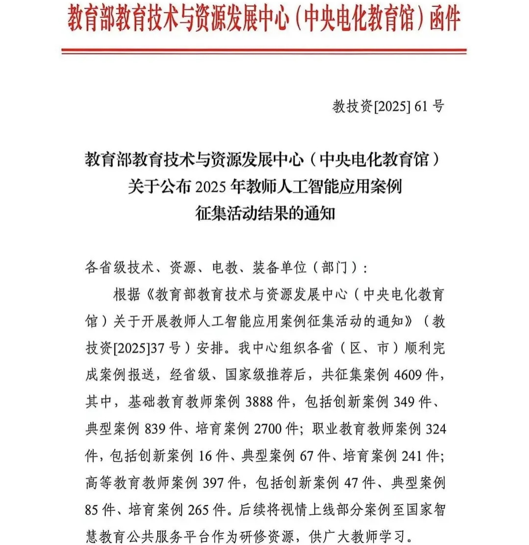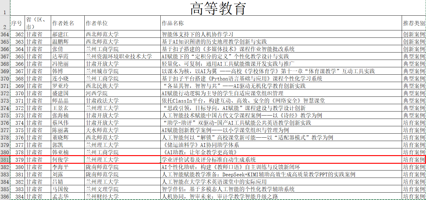 近日,教育部技术与资源发展中心(中央电化教育馆)公布2025年教师人工智能应用案例征集活动结果,我院自动化系何俊学老师申报的《学业评价试卷及评分标准自动生成系统》案例成功入选培育案例名单。