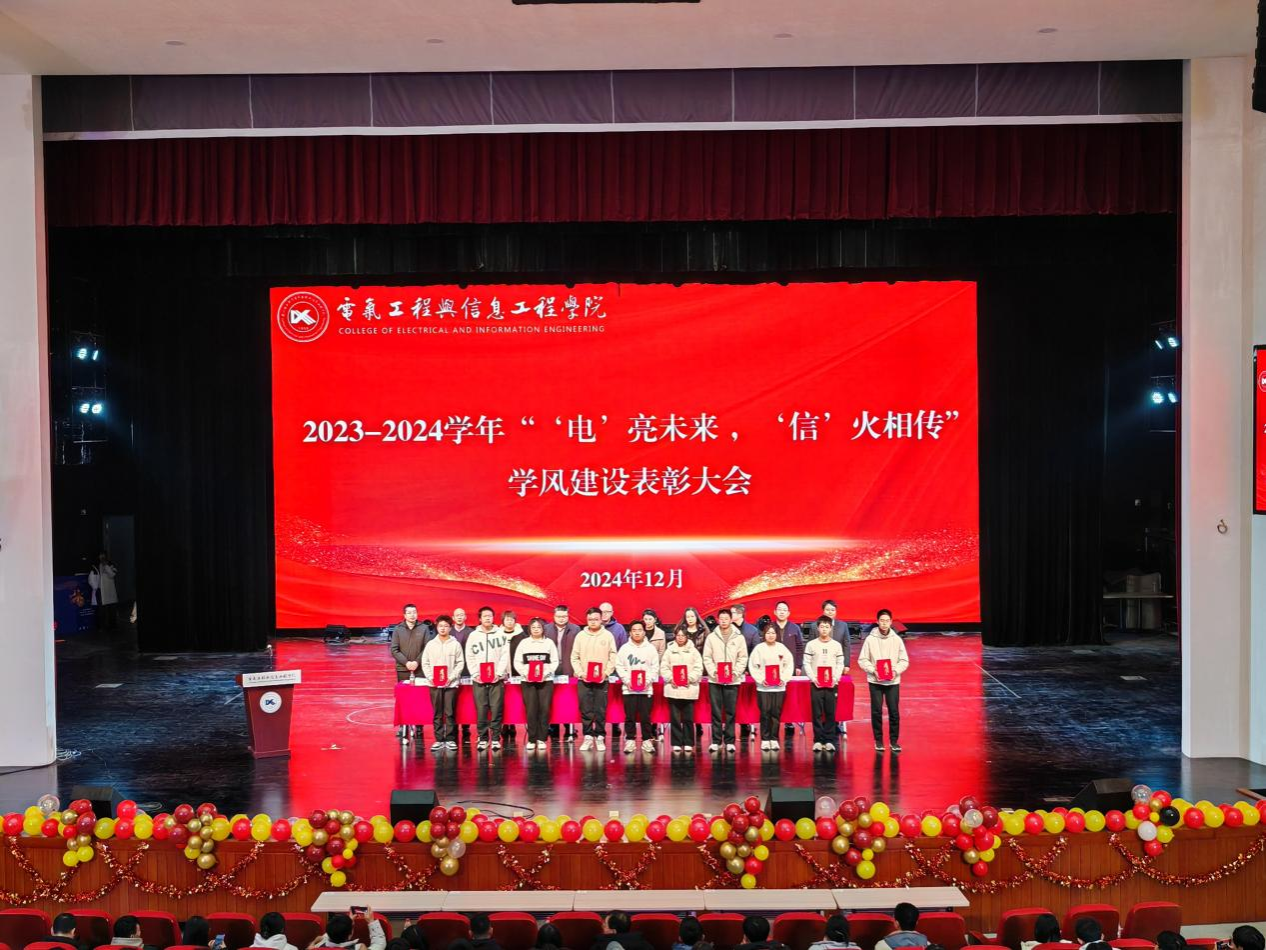 2023-2024学年“‘电’亮未来,‘信’火相传”学风建设表彰大会暨迎新晚会在彭家坪校区大学生活动中心红柳剧场举办。学校党委常委、副校长陈伟,党委学生工作部、校团委、就业指导服务中心等各部门领导以及巨乳做爱