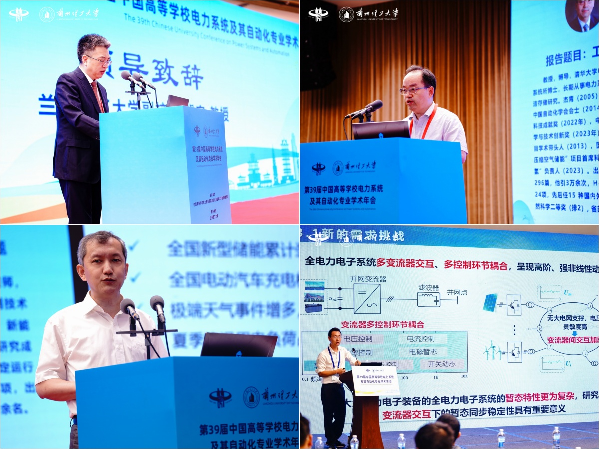副校长冀宏为本次年会致辞。清华大学梅生伟教授、中国电力科学研究院教授级高工王伟胜总工、加拿大工程院张益院士、东北电力大学姜涛教授、上海交通大学冯冬涵教授先后分别作了题为“工程博弈论及电力系统应用”“面向新型电力系统的新能源运行控制问题”“在实时仿真平台上分析电力系统宽频振荡”“数据驱动的电力系统强迫振荡源定位”、“节点边际电价的存在性与唯一性”的大会特邀报告。开幕式、大会特邀报告上半场由电气工程与信息工程巨乳做爱