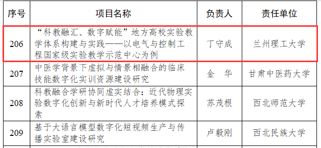 6月20日,教育部发布《教育部高等教育司关于公布实验教学和教学实验室建设研究项目立项名单的通知》(教高司函〔2024〕6号),我院丁守成教授团队负责申报的《“科教融汇、数字赋能”地方高校实验教学体系构建与实践—以电气与控制工程国家级实验教学示范中心为例》项目获得立项。