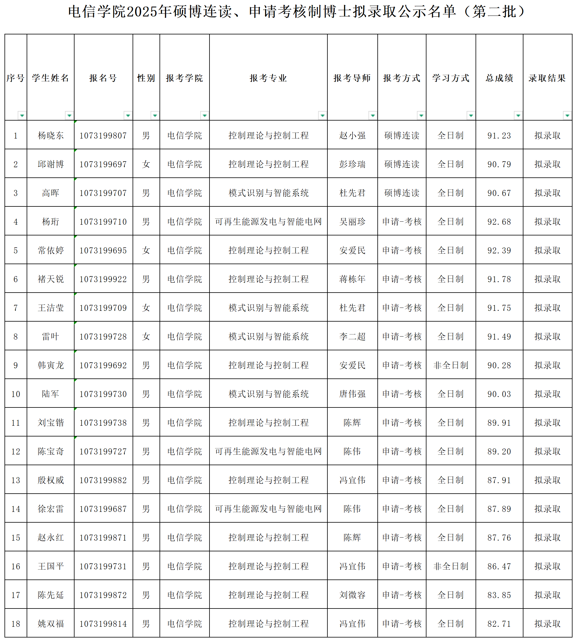 一、拟录取名单 (见附件)