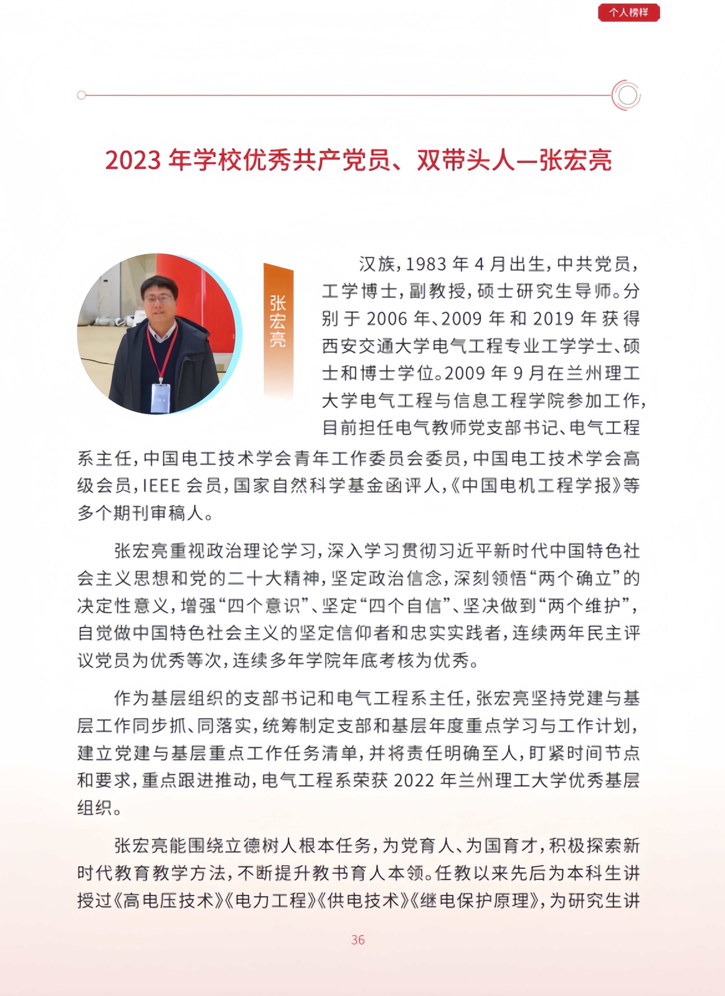 2023年学校优秀共产党员、双带头人--张宏亮