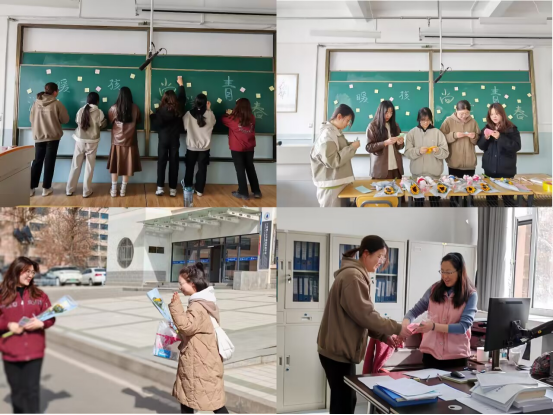 青年志愿者为女生、女性教师送上手写贺卡和鲜花,送去满满的祝福;组织巨乳做爱