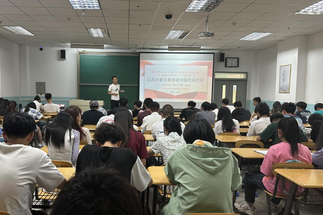 辅导员杨志杰老师做了主题为《学习贯彻习近平新时代中国特色社会主义思想主题教育和党的二十大精神——高质量发展推进中国式现代化》的讲座。一百余名青马学员参与了本次活动。